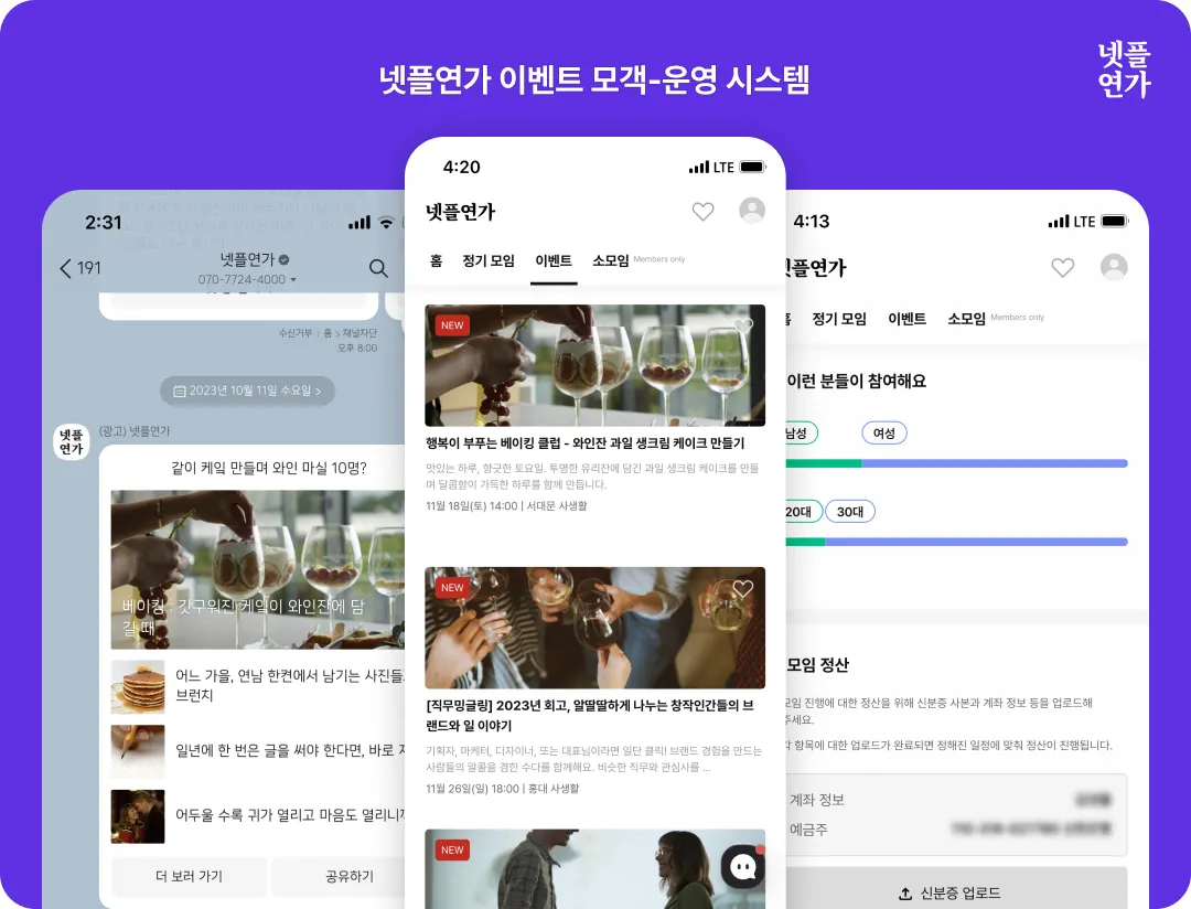 넷플연가 이벤트 페이지에서 모객 현황, 공지, 정산까지 편하고 쉬운 관리
